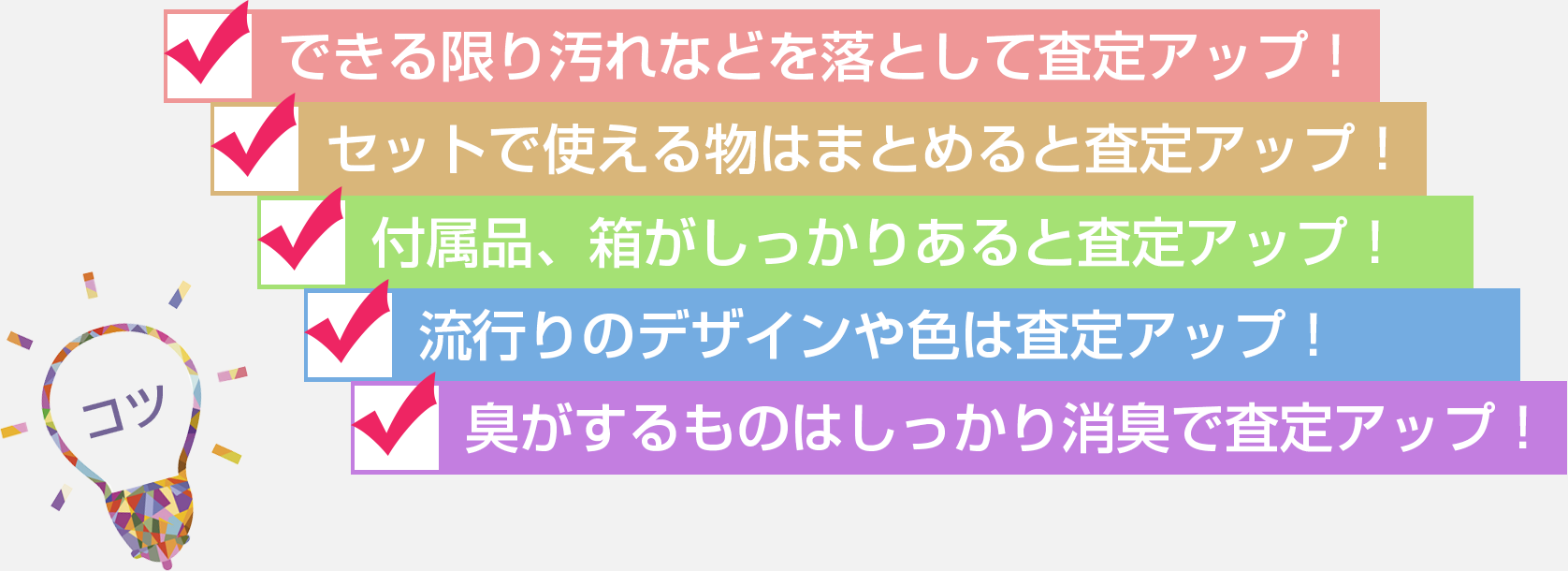 初めての方は査定額や、商品の状態について不安に思われるかと思います。