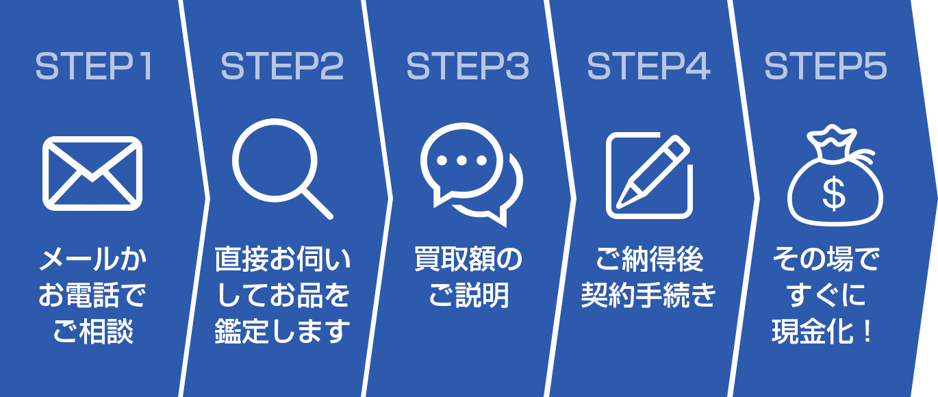 基本的に出張査定の場合は、その場で現金にてお支払い致します。また、宅配買取の場合は銀行振込をさせて頂きます。